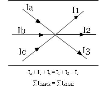 Prinsip “jumlah yang masuk sama dengan jumlah yang keluar” ini adalah inti dari Hukum I Kirchhoff.