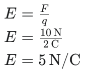 Jika sebuah muatan positif sebesar 2 Coulomb diletakkan di suatu titik, ia merasakan gaya listrik sebesar 10 Newton. Berapakah kuat medan listrik di titik tersebut?